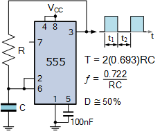 555 Circuits Using The 555 Timer As An Astable Oscillator